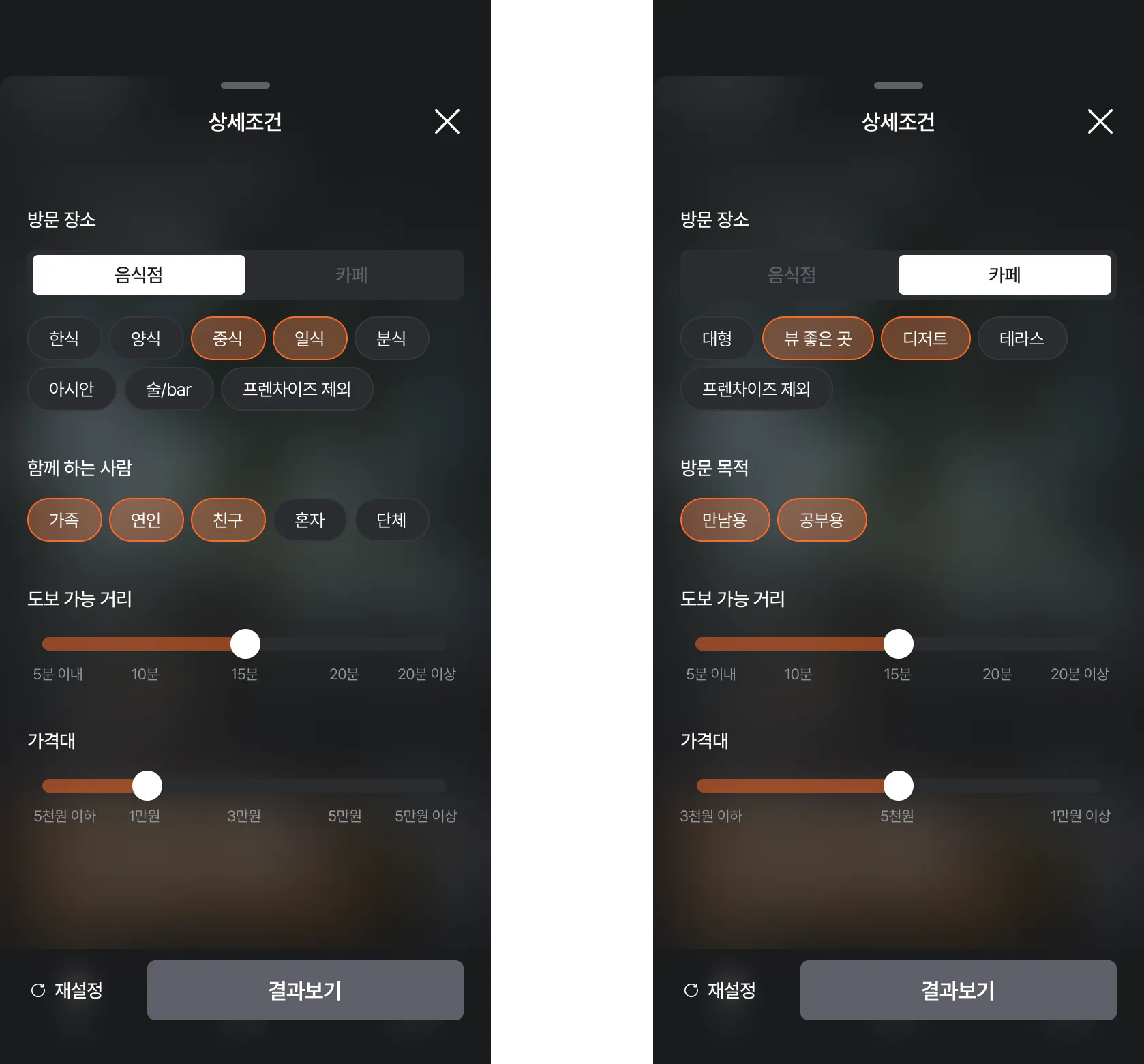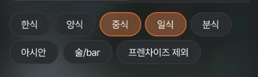 - 장소 검색 시 필터링을 위해 어떤 버튼이 선택 되었는지 알 수 있어야 함.