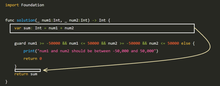 guard num1 >= -50000 && num1 <= 50000 && num2 >= -50000 && num2 <= 50000 else {