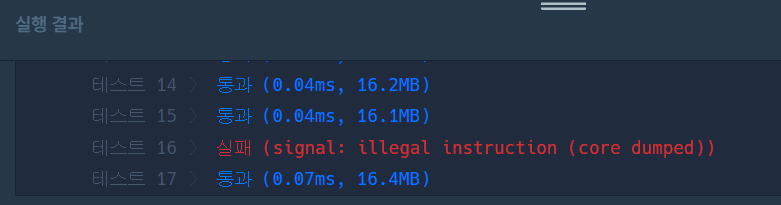 그런데 위 코드를 실행하면 16번 테스트에서 막히는데,