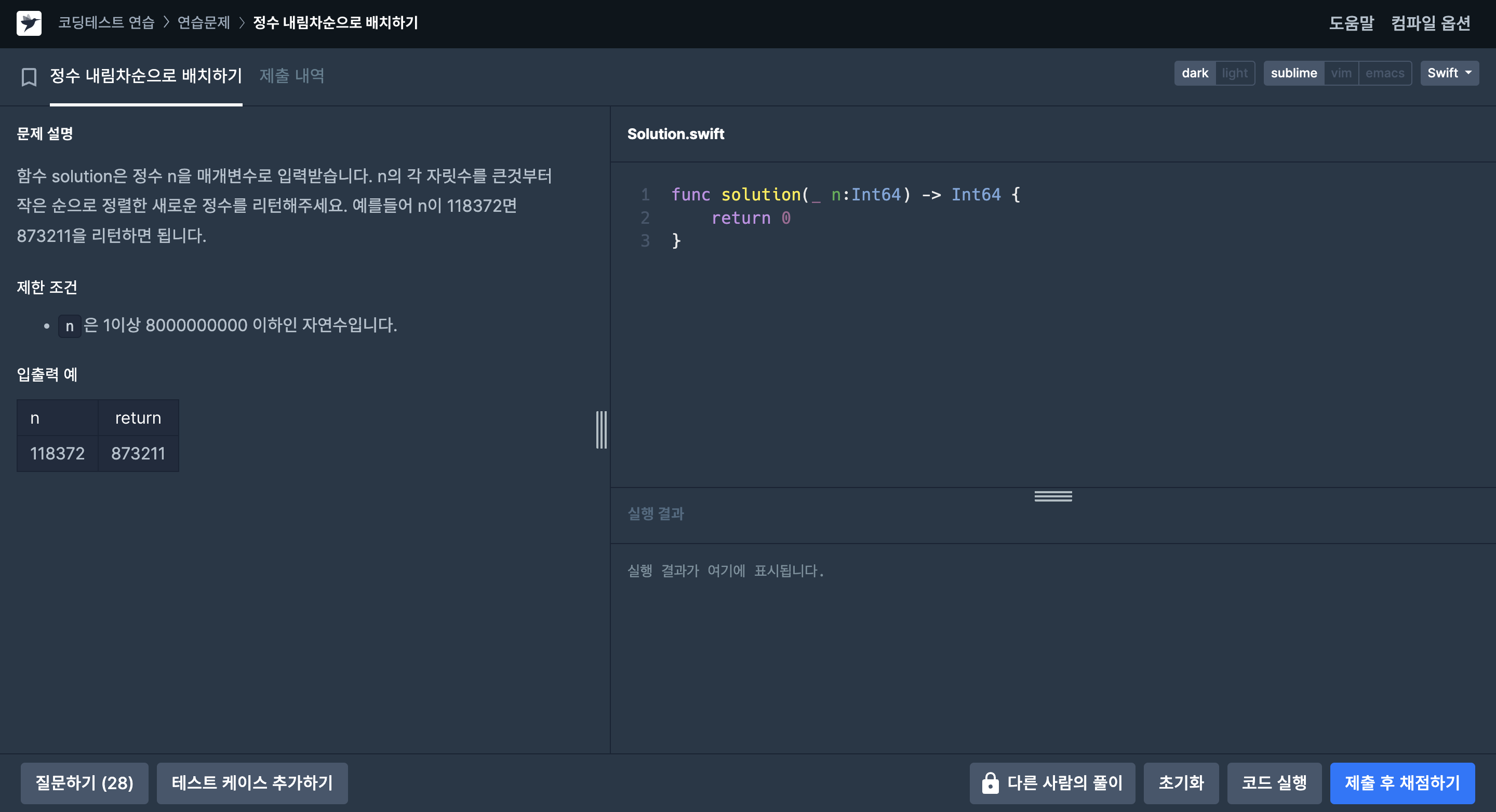 arr.sort(by: >) // arr을 내림차순으로 정렬