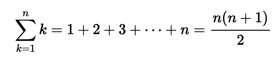 1부터 n까지 모든 정수의 합은 n(n+1)/2로 계산할 수 있다.