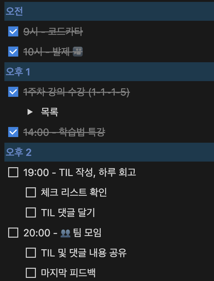 2. 개인과제, 팀과제 : 복습하며 사고력, 구현력 중점적으로 단련