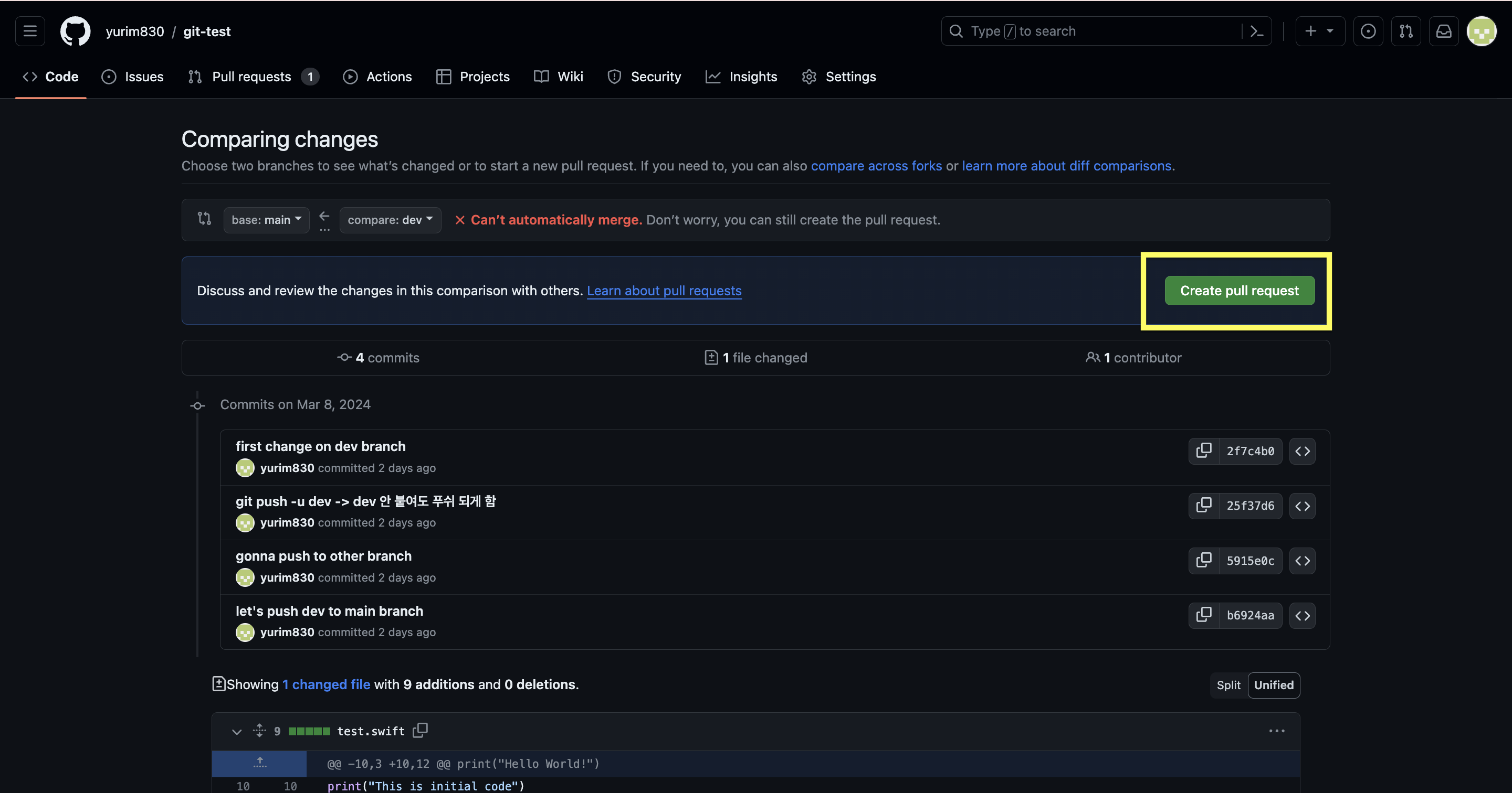 3-4. 머지하기 전 로컬에서 충돌 해결 및 테스트