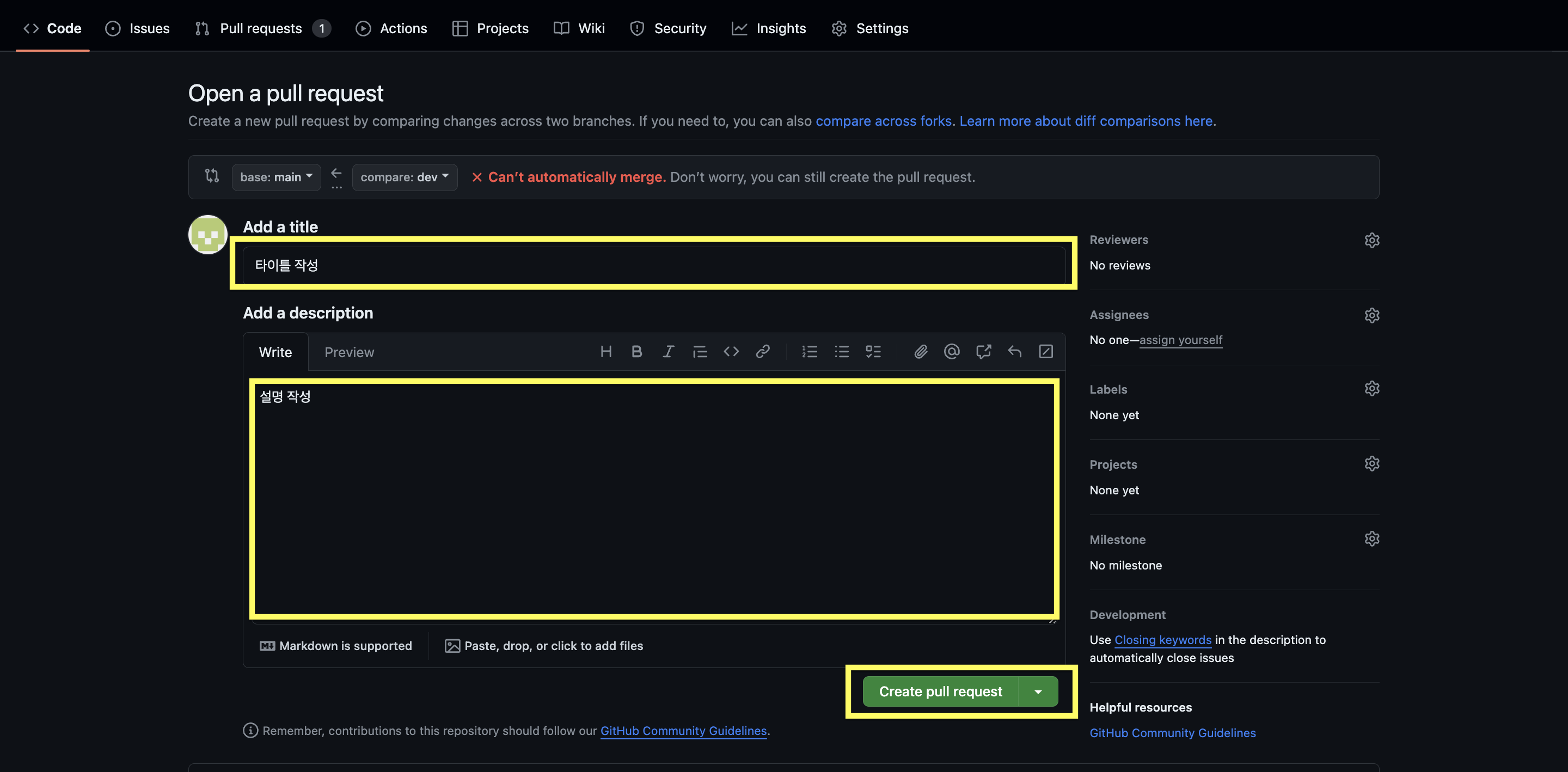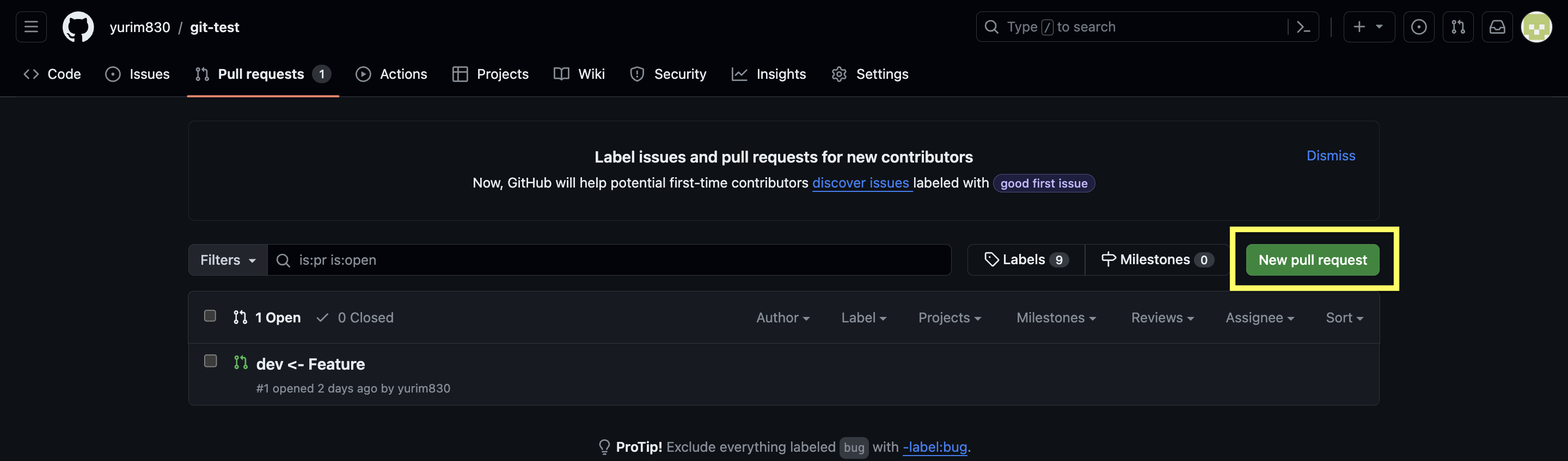 -> 1) 기능 브랜치에서 dev 브랜치 땡겨오기
