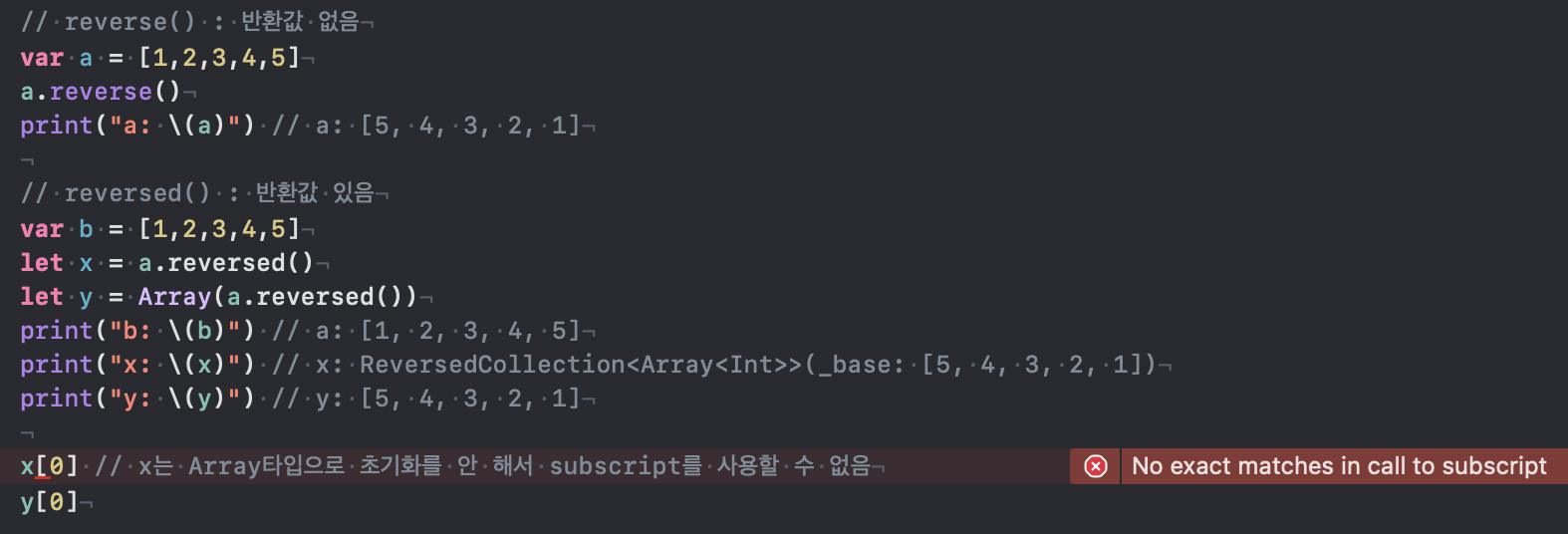 한편, 여기(링크) 풀이 2에서는 Array로 감싸지 않고도 reversed()가 사용되었는데,