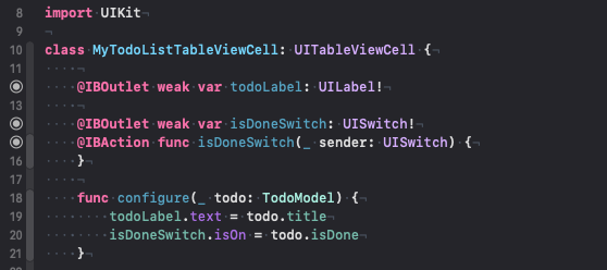 configure(_:)는 UITableViewCell을 상속받은 custom cell(MyTodoListTableViewCell 타입)이다.
