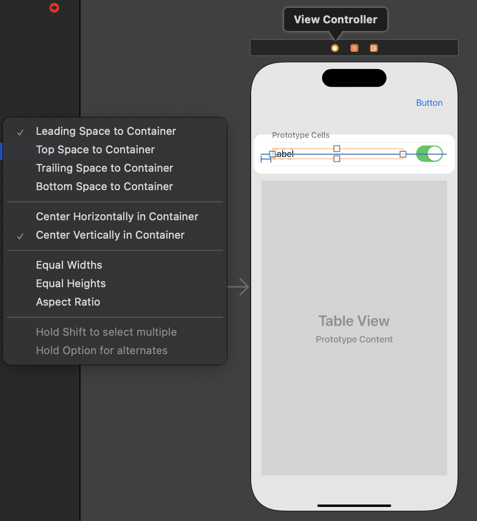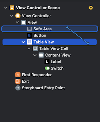 a. Table View를 Control 키 누른 상태로 Safe Area로 드래그