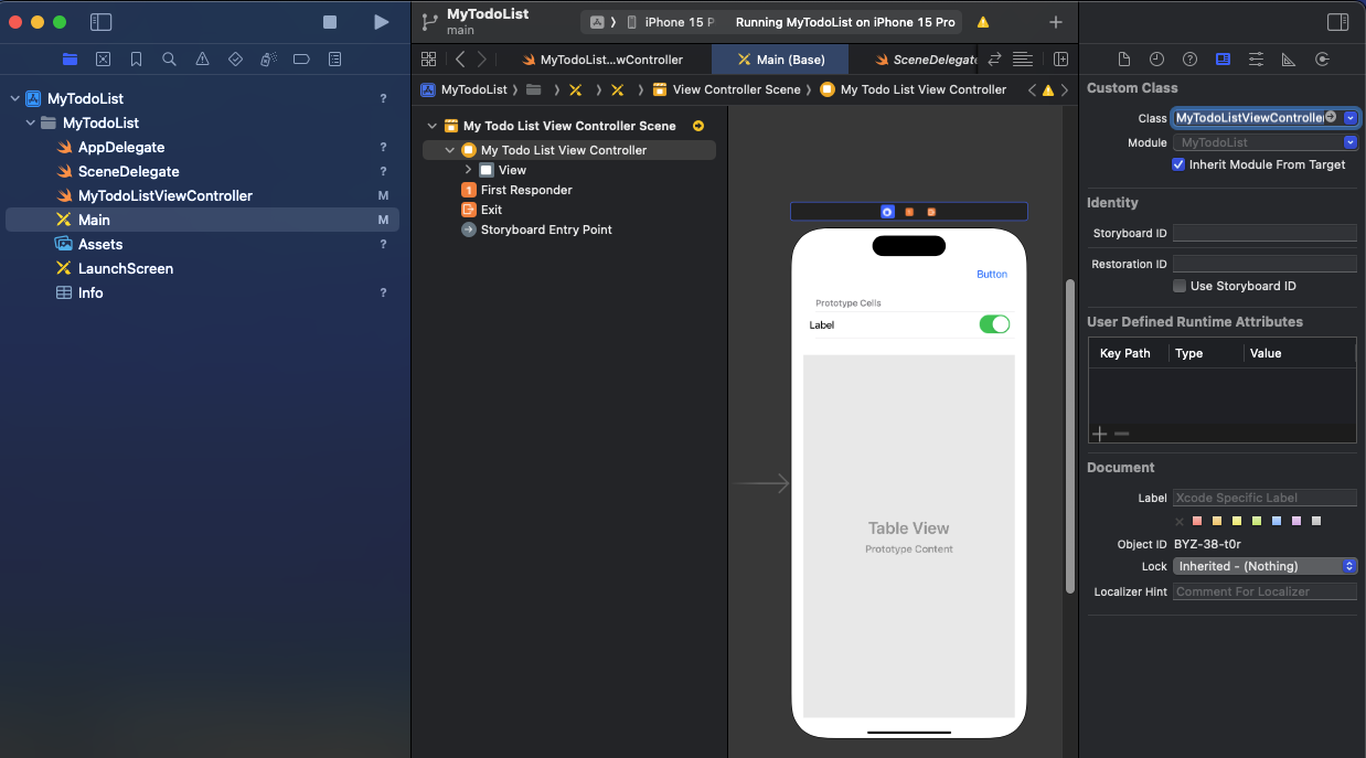 따라서, cell을 MyTodoListTableViewCell 타입으로 다운캐스팅 시켜주어야 한다.