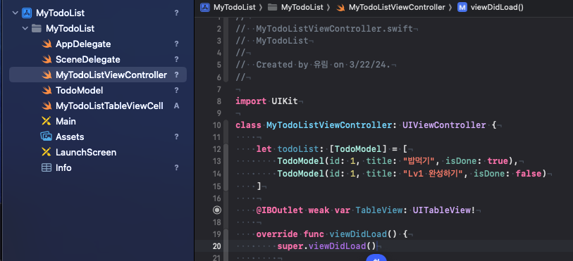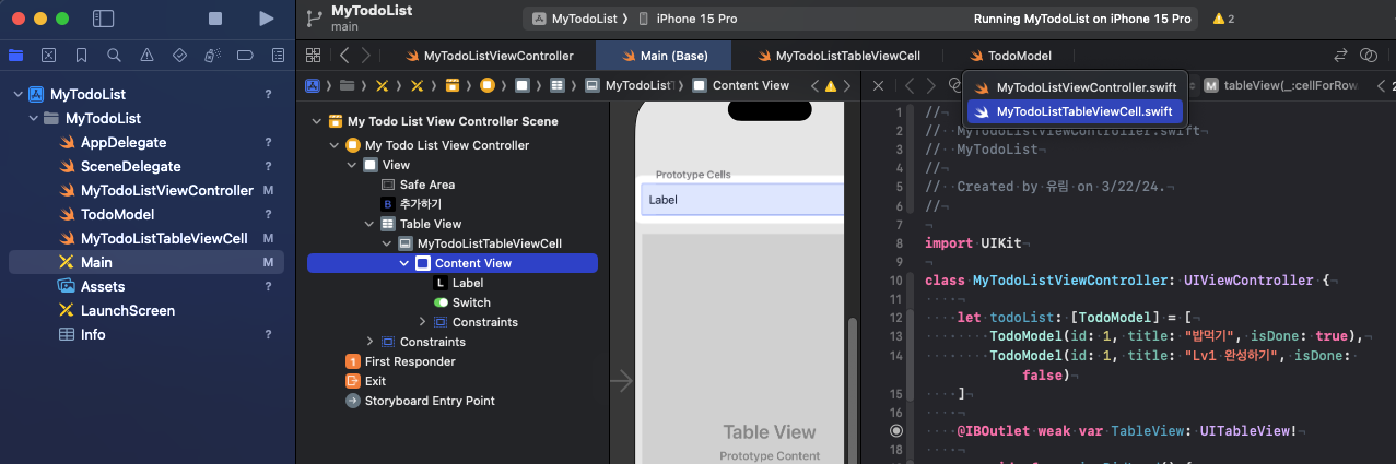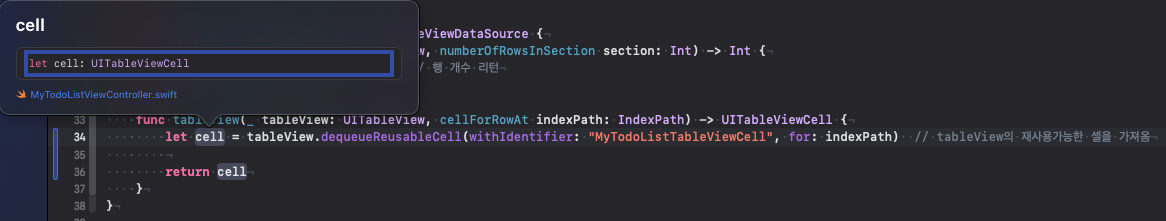 -> 상단 바에서 ViewController ➡️ TableViewCell 파일로 이동