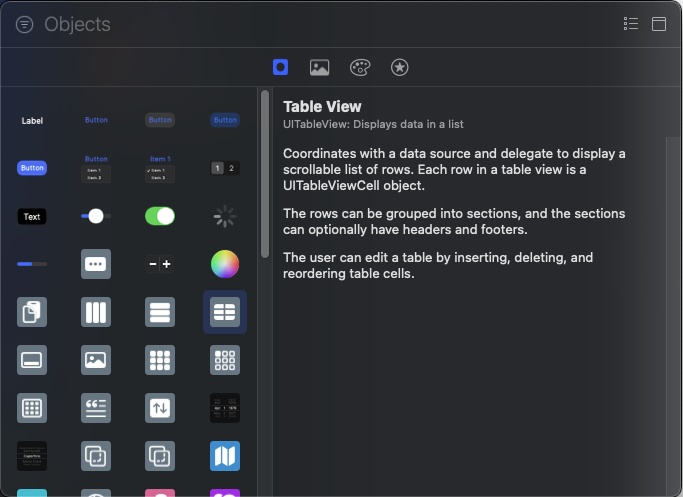 1. TableView 생성 (drag&drop)