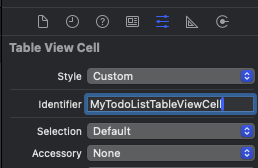 (*cell은 재사용되므로 재사용 구분자인 identifier가 필요하다. -> custom cell 객체의 이름을 똑같이 넣으면 된다.)