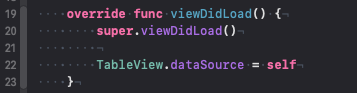1. UIViewController 오버라이드 함수 안에 TableView.dataSource = self 라는 코드를 추가하고,