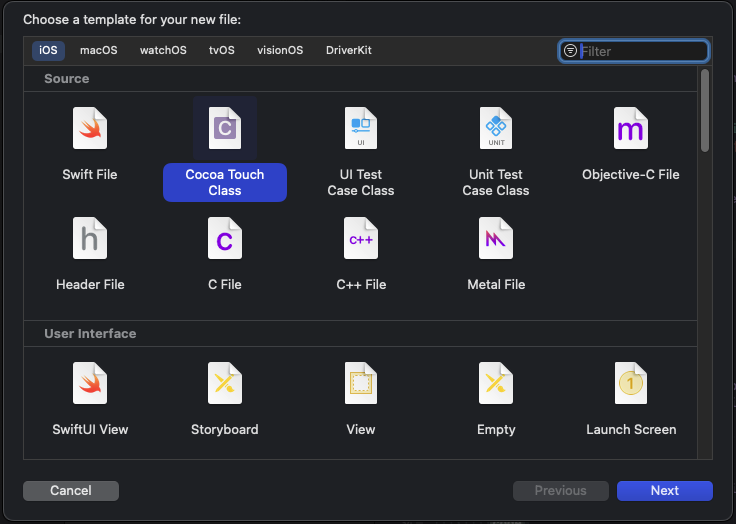 1. 새로운 Cocoa Touch Class 파일 생성