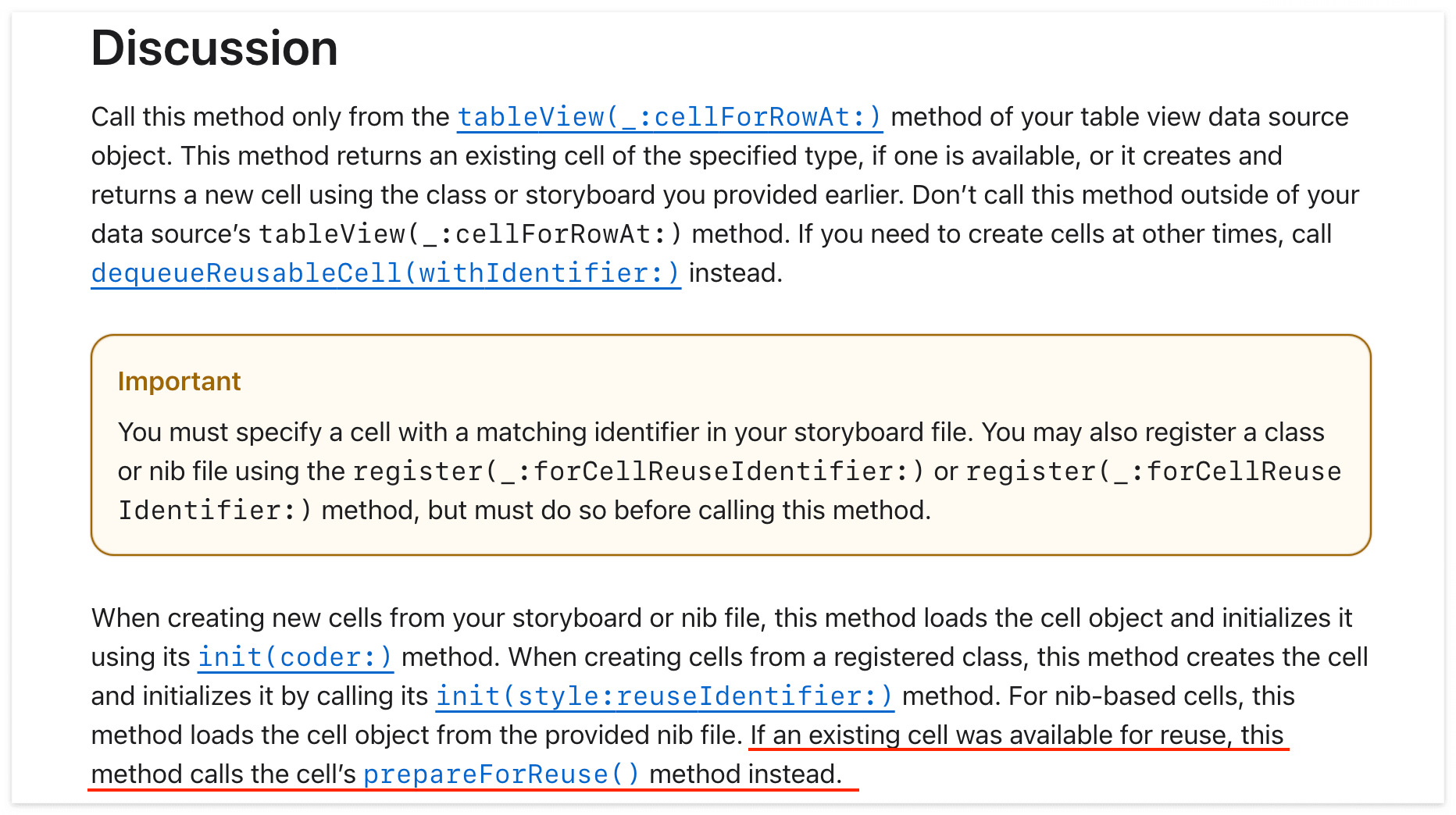 셀의 prepareForReuse() 메소드를 호출한다고 한다.