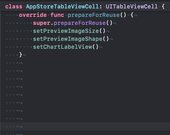 그래서 이번에는 prepareForReuse() 메소드에 디자인 코드를 호출시켜보았다.