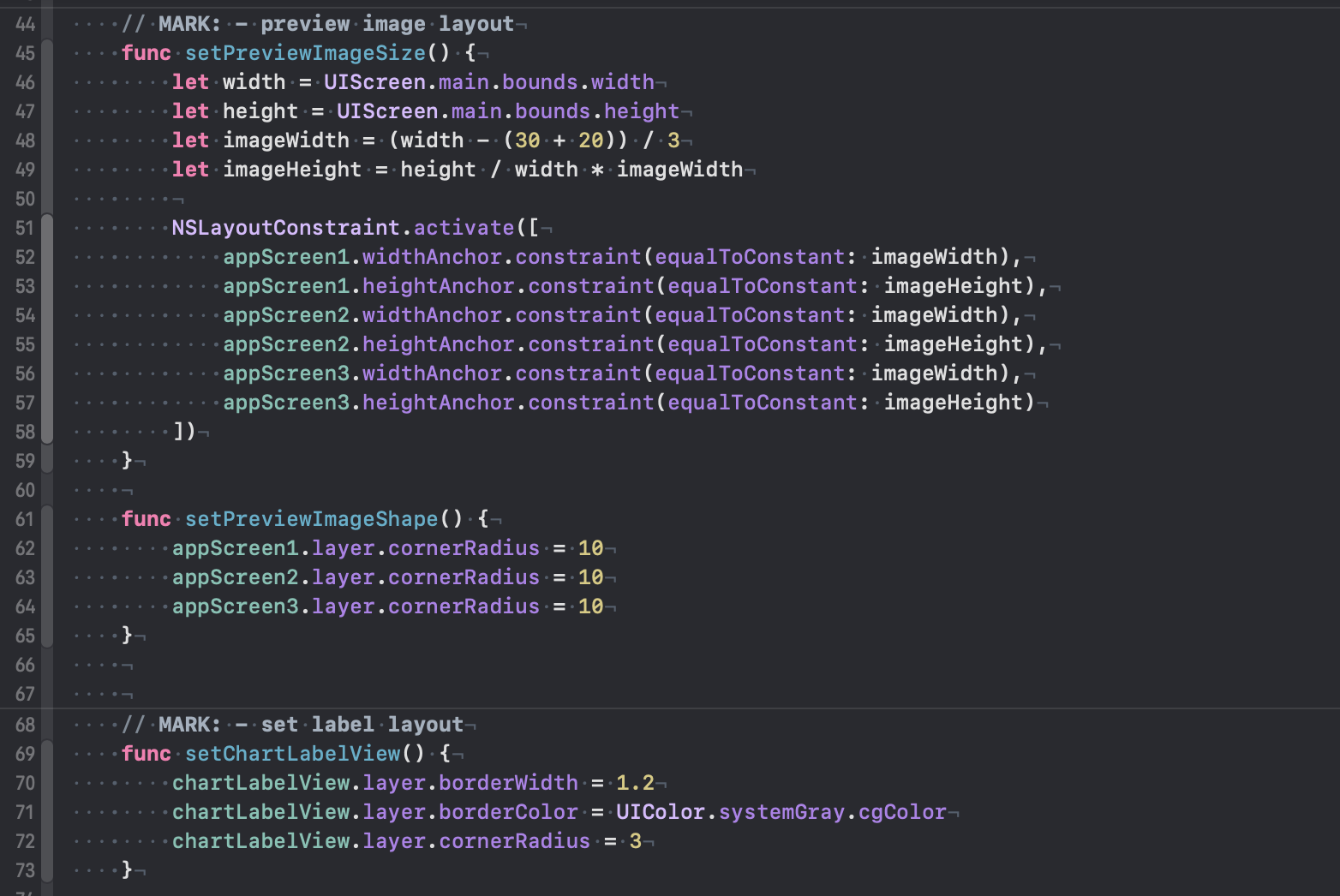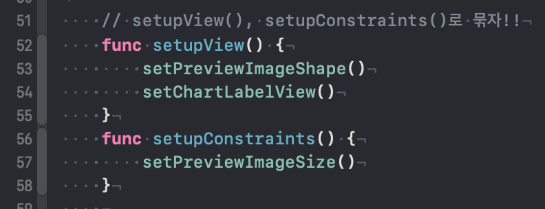 2. 코드 가독성을 위해 뷰, 제약조건 함수를 setupView(), setupConstraints() 등의 함수로 묶자.