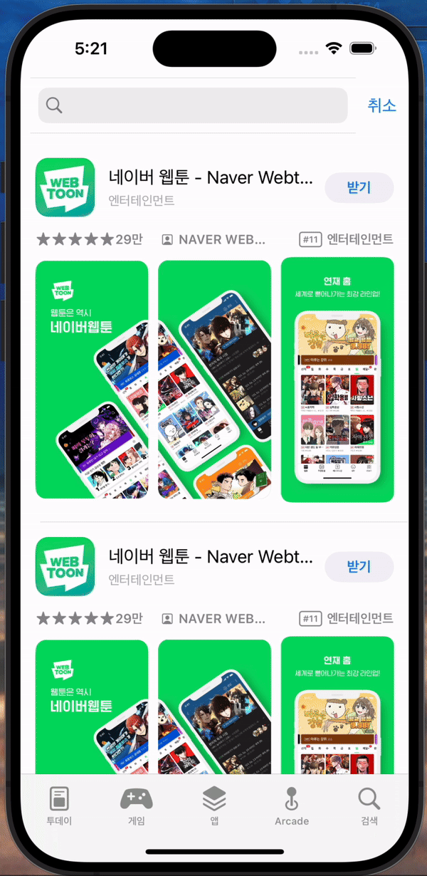 스탠다드반 과제로 appstore 검색 뷰를 만드는 중이다.